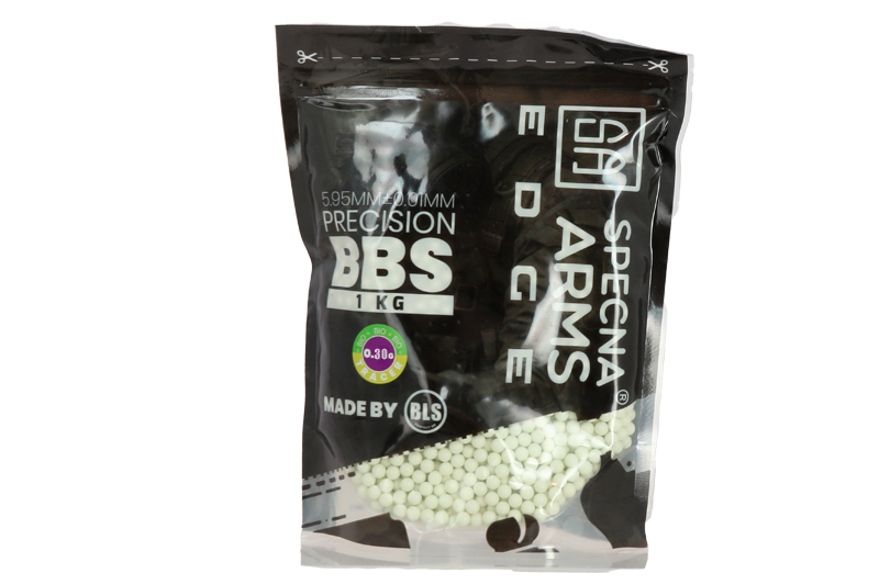 Sachet de 1Kg de billes traçantes Bio 0.20 grammes de marque Specna Arms en collaboration avec BLS, idéales pour vos parties d'airsoft de nuit !
