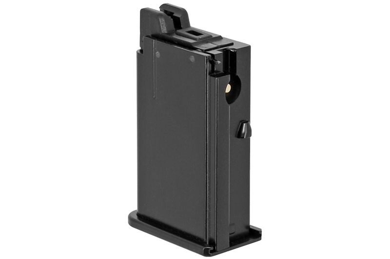 WE propose un chargeur court à gaz noir d'une capacité de 13 billes, idéal pour ne plus être à court de billes sur votre réplique de poing airsoft de type M712 GBB WE.
