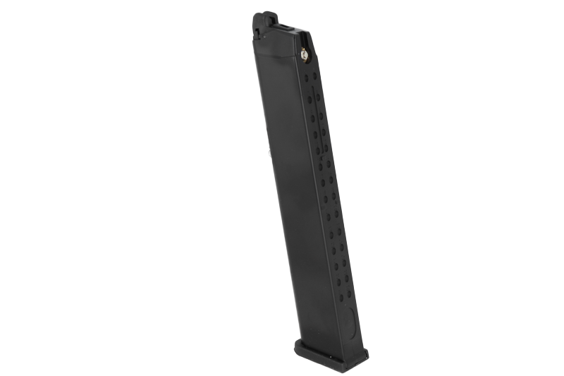Chargeur Gaz long d'une capacité de 50 billes, compatible avec les répliques de poing airsoft type Glock 17 / 18 / 34 WE.