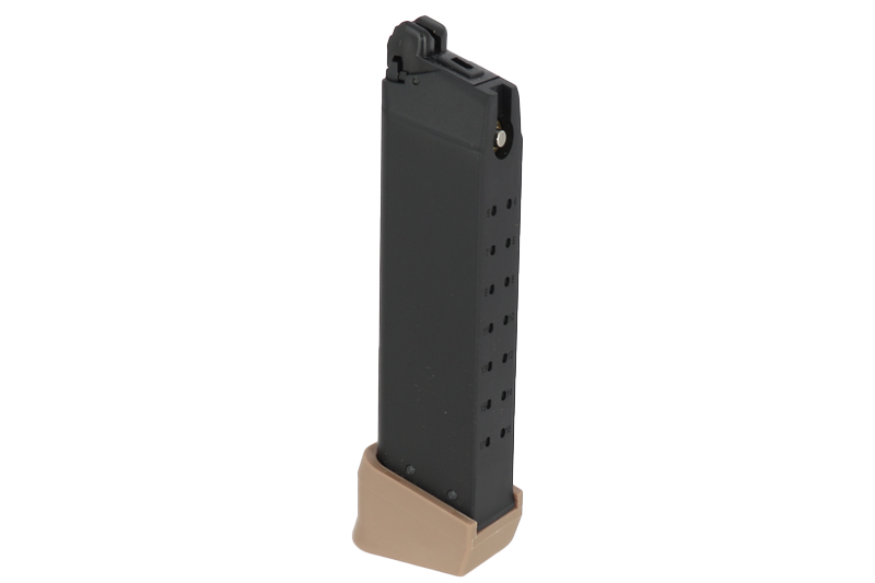 Chargeur Gaz Tan d'une capacité de 23 billes pour réplique de poing airsoft MAGNA IV / III Secutor. Idéal pour ne plus être à court de billes lors de vos parties.