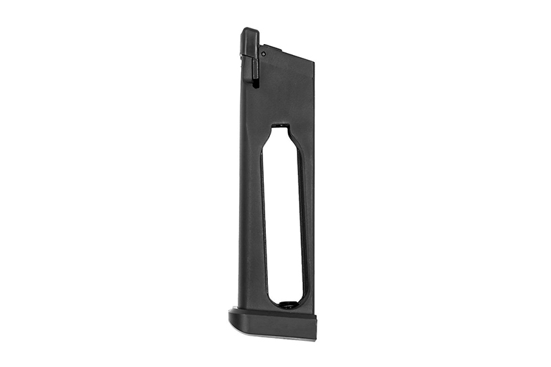 On retrouve ici un chargeur CO2 d'origine d'une capacité de 23 billes, idéal pour ne plus être à court de billes avec votre réplique de poing airsoft GBB Hi-capa Vengeance VORSK.