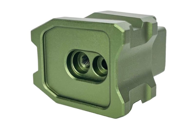 On retrouve ici une extension de chargeur fabriquée en aluminium CNC de couleur Army Green / AGN pour chargeur de réplique de poing AAP-01 GBB de chez AAC.