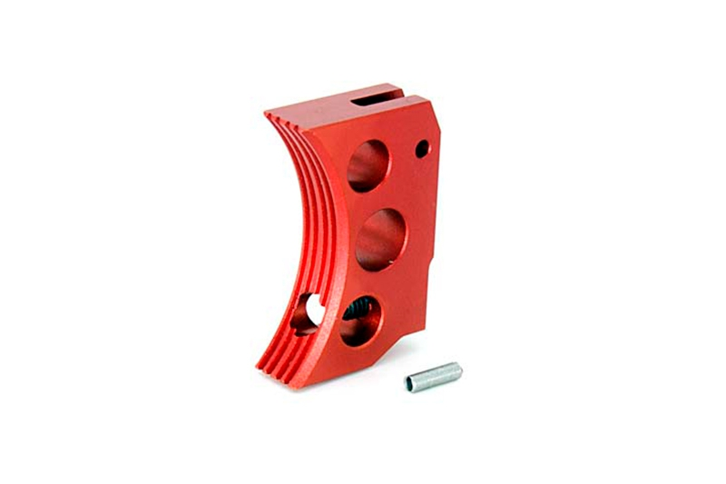 On retrouve ici une détente type F short en aluminium CNC de couleur rouge pour Hi-Capa GBB. Idéal pour personnaliser votre réplique de poing airsoft !