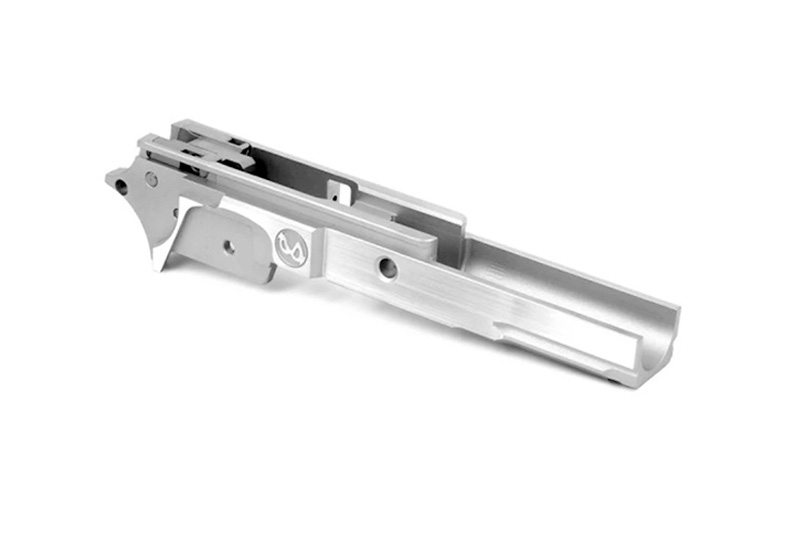On retrouve ici une frame Advance Infinity 3.9 avec rail de couleur argent pour Hi-Capa GBB Tokyo Marui. Fabriquée en aluminium CNC et très légère, elle est idéale pour personnaliser votre réplique de poing airsoft.