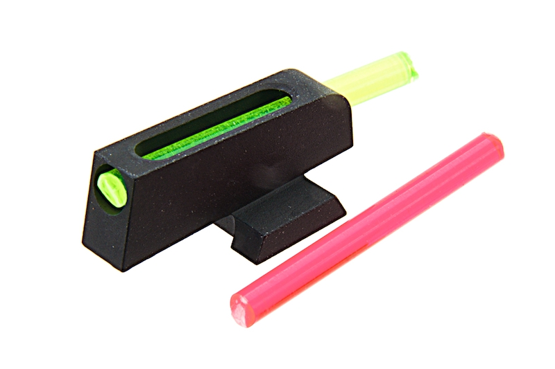 Dynamic Precision propose une mire de visée avant front sight avec deux fibres optiques (rouge / vert), idéale pour améliorer l'acquisition de cible sur votre réplique de poing airsoft type Hi-capa Tokyo Marui.