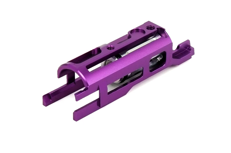 On retrouve ici un blowback housing type ver.2 en aluminium de couleur violette compatible Hi-capa 4.3 / 5.1 GBB de chez Tokyo Marui. Ne pesant que 11 grammes, il est idéal pour un upgrade de l'interne de votre réplique de poing airsoft et vous permettra un cycle très rapide.
