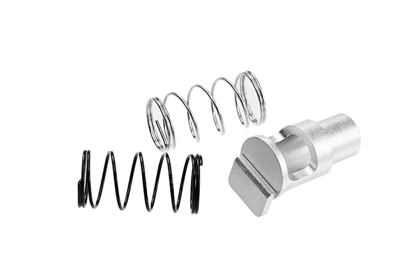 On retrouve ici une rocket valve en aluminium CNC type G17 / G19 GBB Tokyo Marui, compatible avec les nozzles renforcés de chez COWCOW. Idéal pour un upgrade de votre réplique d'airsoft de poing.