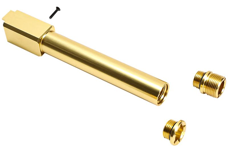 On retrouve ici un Outer Barrel 2 Way Non-recoil Gold de marque Nine Ball pour réplique de poing airsoft type Glock 17 Gen5 MOS Tokyo Marui.