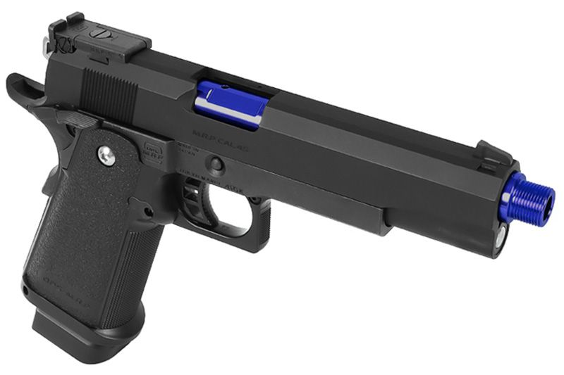Le fabricant propose ici un outer barrel TDC pour Hi-capa 5.1 Tokyo Marui en version Blue. En plus de disposer d'un filetage 14mm CCW en bout de canon, ce canon externe TDC permet un ajustement très rapide du Hop-up via une vis de réglage sur le dessus