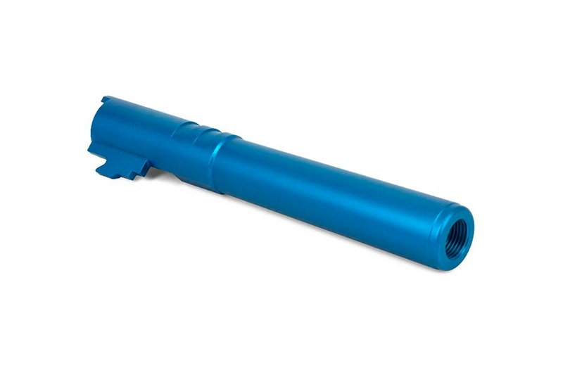 On retrouve ici un outer barrel en aluminium CNC de couleur bleu avec filetage 11mm CW compatible Hi-Capa 5.1 Tokyo Marui. Idéal pour upgrade votre réplique de poing airsoft.