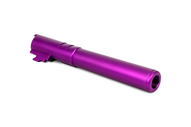 On retrouve ici un outer barrel en aluminium CNC de couleur violet avec filetage 11mm CW compatible Hi-Capa 5.1 Tokyo Marui. Idéal pour upgrade votre réplique de poing airsoft.