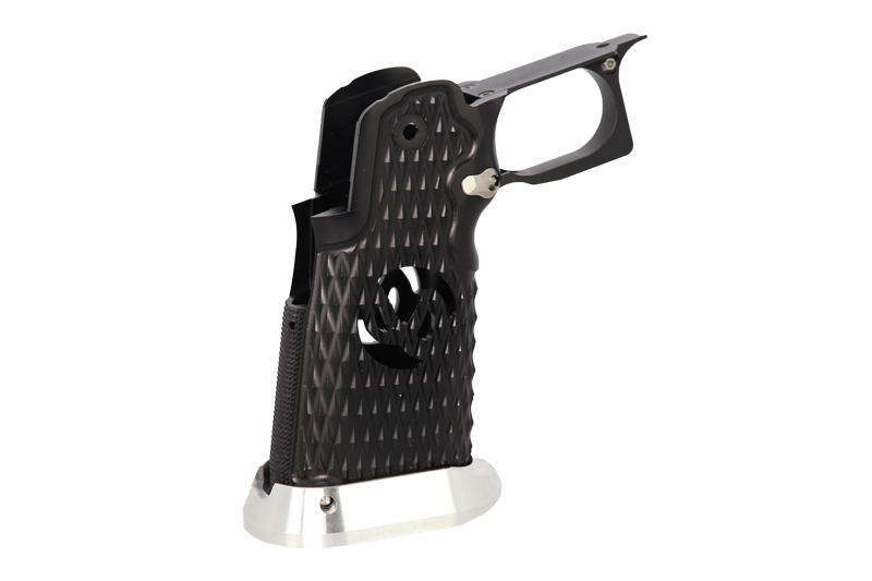 On retrouve ici un grip type 8 aluminium de couleur noire compatible Hi-Capa 5.1 Tokyo Marui. Il est fourni avec un magwell marqué Infinity.