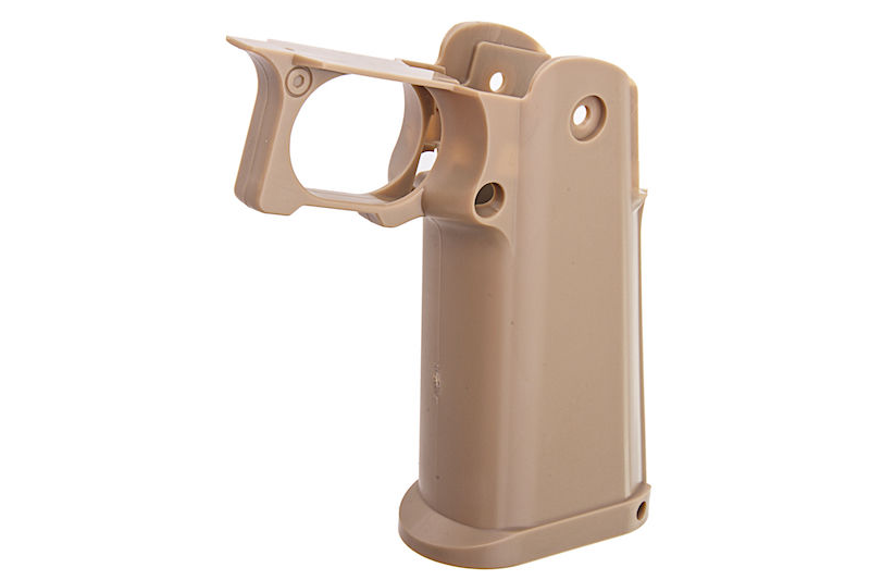 On retrouve ici un pistol grip custom pour Hi-Capa GBB Tokyo Marui fabriqué en polymère de couleur désert. Très pratique puisque lisse, il vous permettra de réaliser facilement un stippling ou d'y apposer grip tape et stickers en tout genre ! Idéal pour personnaliser votre réplique de poing !