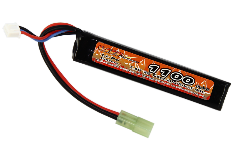Batterie Lipo 7.4V 1100mAh Stick 20C de la marque VB, idéale pour alimenter votre réplique airsoft AEG.