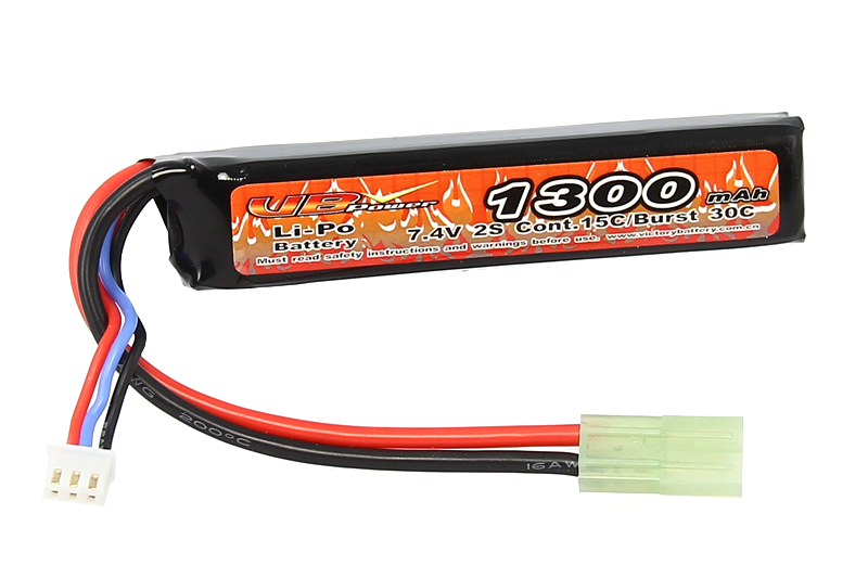 Batterie Lipo 7.4V 1300mAh 30C de la marque VB, idéale pour alimenter votre réplique airsoft AEG.