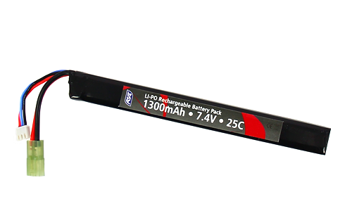 Batterie Lipo 7.4V 1300mAh 25C de la marque ASG. Cette batterie est idéale pour alimenter votre réplique d'airsoft.