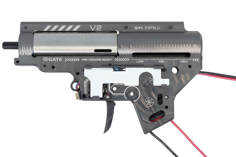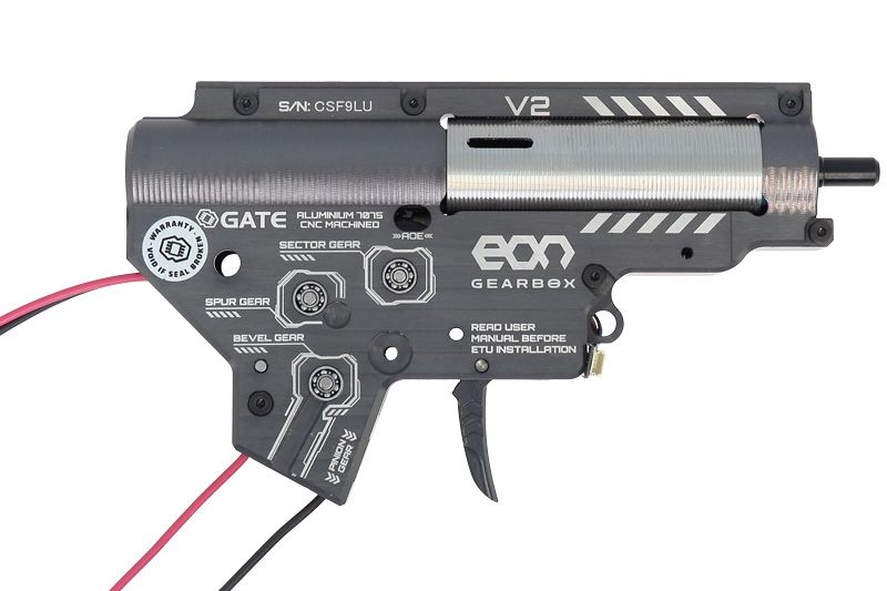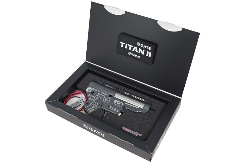 On retrouve ici une gearbox V2 câblage arrière complète EON Full Stroke avec des pièces internes GATE de haute qualité ainsi que le mosfet TITAN II Bluetooth® entièrement montée.