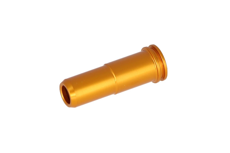 On retrouve ici un nozzle fabriqué en aluminium CNC de longueur 24.75 mm et de couleur or compatible réplique AUG AEG. Idéal pour un upgrade de l'interne de votre réplique longue d'airsoft.