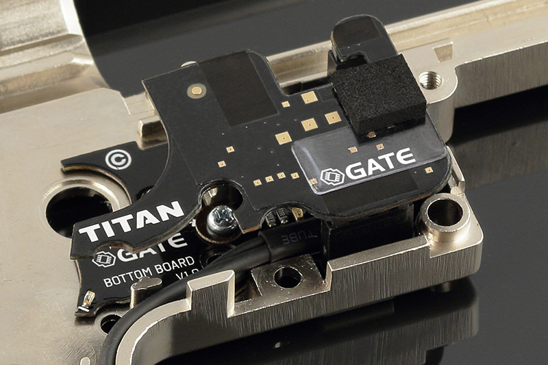 Le TITAN GATE est le premier MOSFET au monde pour gearbox V2 à intégrer 8 capteurs optiques. Il a la particularité de venir se placer directement dans la gearbox (compatible avec la plupart des AEG). Les capteurs optiques ont l'avantage d'éliminer les risques de défaillances que l'on peut avoir avec les interrupteurs classiques.