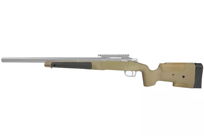 Maple Leaf propose un kit crosse MLC S1 rifle stock en version tan, conçu pour customiser votre réplique airsoft sniper VSR10 / VSR10 G-SPEC Tokyo Marui.