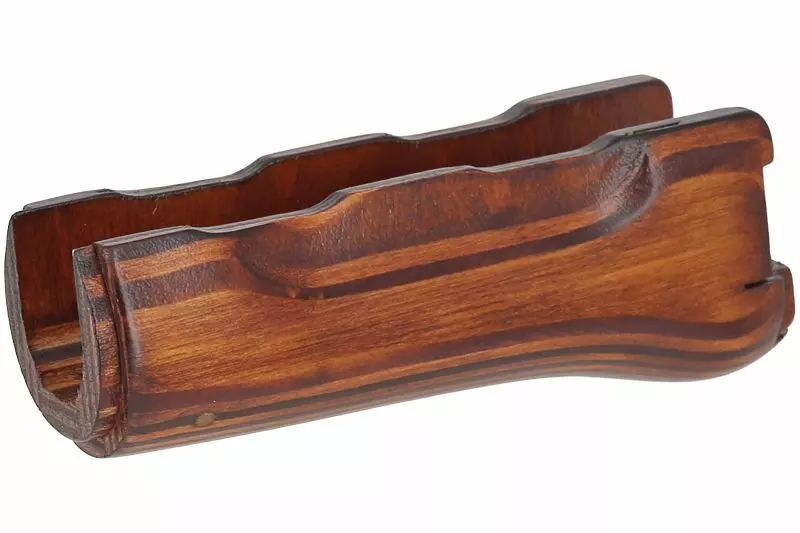On retrouve ici un lower handguard AKS74UN fabriqué en bois vernis de couleur marron. Idéal pour personnaliser sa réplique longue d'airsoft !