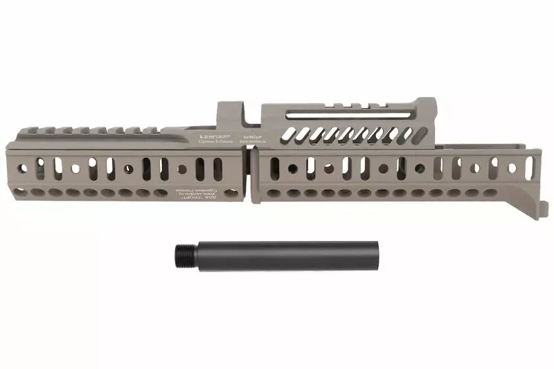On retrouve ici un set de garde main complet (lower et upper) sport type 3 de couleur noire fabriqué en métal et aluminium compatible avec les réplique type PP19 AEG LCT. Livré avec une rallonge de canon externe de 112mm. Idéal pour personnaliser votre réplique d'airsoft.