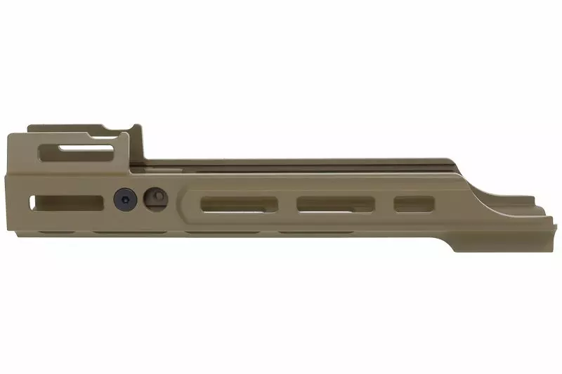 PTS nous propose ici un kit garde main / rail MREX MKII 2.2" de couleur dark earth / DE réalisé en aluminium CNC 6000 Series. Celui-ci est sous licence officielle Kinetic Development Group Limited compatible avec les répliques type SCAR GBB Cybergun / AEG & GBB VFC / GBB WE / NGRS Tokyo Marui. D'une finition exemplaire, il va permettre d'accessoiriser et de rallonger votre réplique SCAR via de nombreux slots M-LOK dont deux à 45 degrés à l'avant du rail.