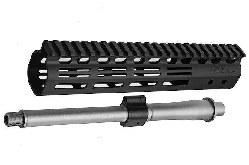 On retrouve ici un kit complet N4 DEVGRU sous licence officielle NOVESKE pour réplique airsoft M4 / MTR16 MWS Tokyo Marui GBBR. Ce kit complet de très haute qualité est conçu en aluminium CNC et métal de couleur Graphit Black doté d'une très belle finition cerakote. Il est livré avec le upper et receiver, un outer barrel couleur gunmetal, un garde main Noveske M-LOK Gen3 9 pouces, un gas block Noveske et un set d'installation.