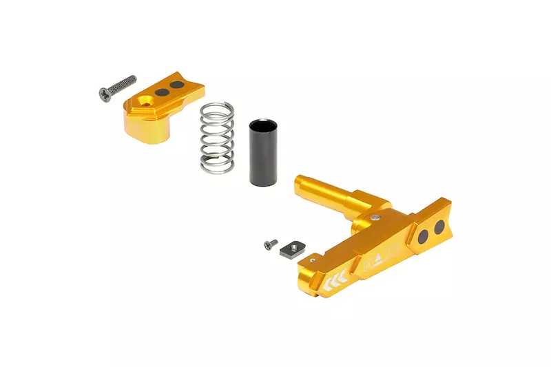 Ce Magazine Catch Advanced en aluminium CNC reçoit une finition anodisée et une couleur or donnant un look unique à votre réplique d'airsoft.