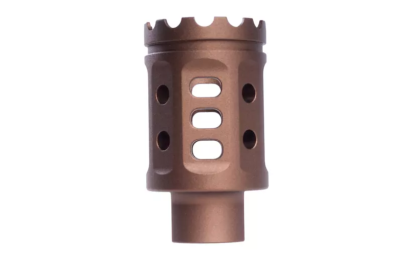 Cache-flamme Meat Cutter Bronze en métal de la marque G&P, parfait pour personnaliser vos répliques d'airsoft équipées d'un pas de vis 14mm CW / CCW.