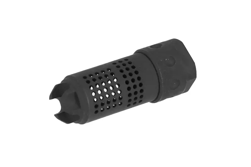 Cache flamme Rusher en Métal disposant d'un pas de vis 14mm CCW (anti-horaire), idéal pour personnaliser l'embout de canon de votre réplique airsoft.