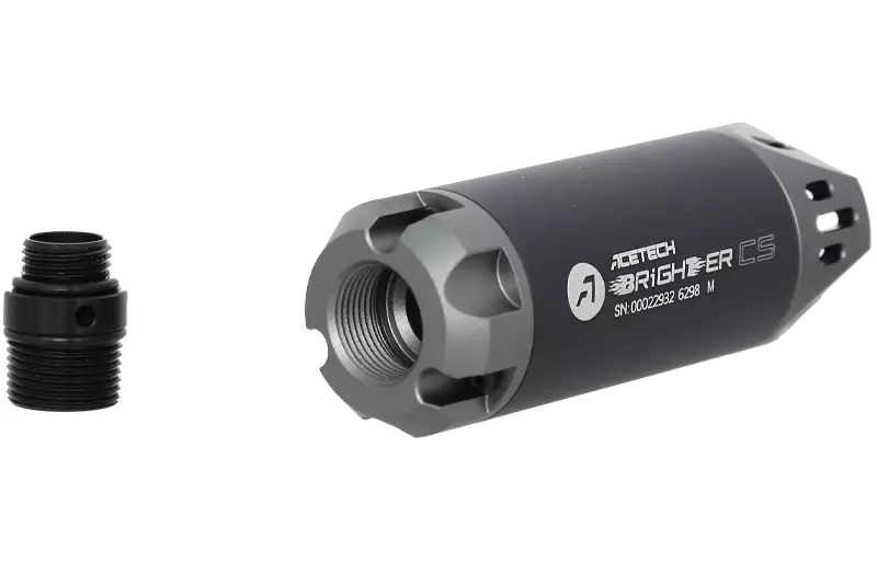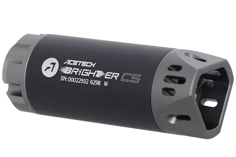 ACETECH propose un traceur compact BRIGHTER CS Gray / Gray très lumineux et dans un format réduit avec design futuriste, idéal pour pouvoir jouer à la bille traçante verte sur votre réplique airsoft.