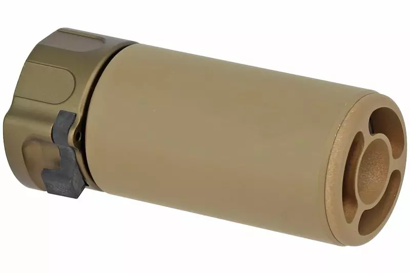 On retrouve ici un traceur Warden Spitfire de couleur DE fabriqué en métal et un module traceur de type BBP-32 de 32mm de diamètre. Le tout dispose d'un filetage 14mm CCW. Il permet de tracer vos billes et de flasher lors du tir. Idéal pour augmenter l'immersion lors de vos parties de nuit !
