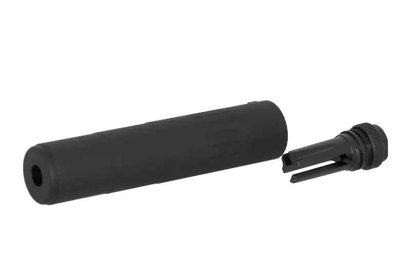 SHS propose ici un set silencieux QD type M4-2000 en aluminium et cache flamme en acier fileté en 14mm CCW. Idéal pour personnaliser votre réplique airsoft longue.