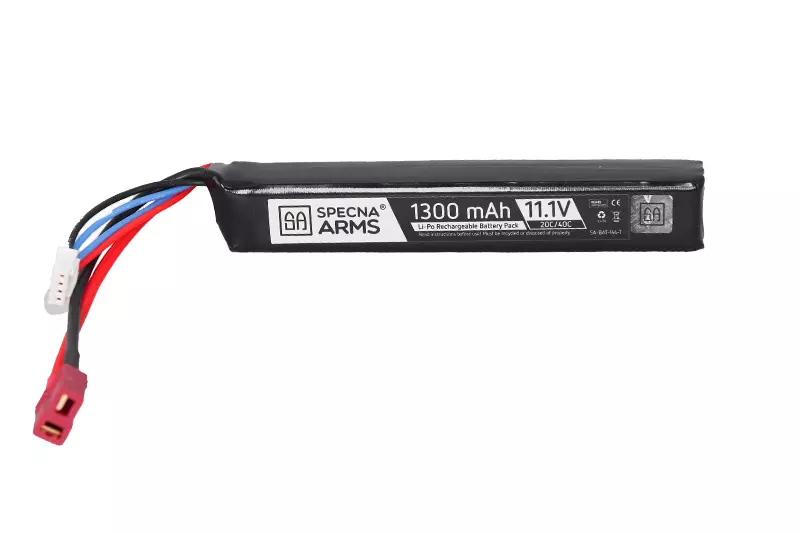 Batterie Lipo Stick 11.1V 1300mAh 20/40C de la marque SPECNA ARMS, idéale pour alimenter votre réplique airsoft AEG. On retrouve une connectique DEAN.