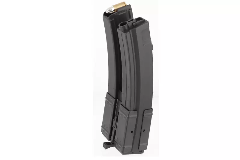 Chargeur Hi-cap d'une capacité de 560 billes de marque Cyma sous forme de chargeurs couplés, pour réplique d'airsoft MP5.