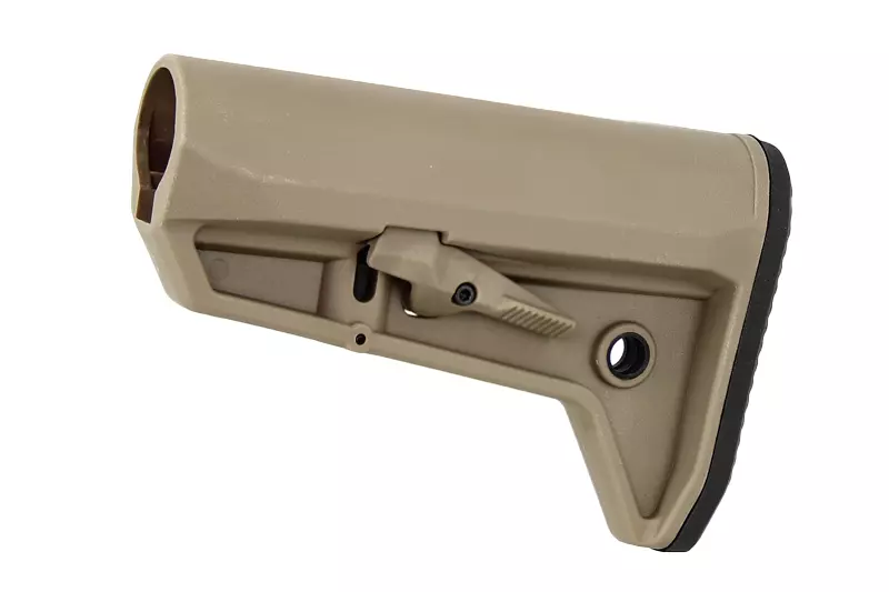 Crosse Style SLK Tan de marque Emerson, idéale pour personnaliser votre réplique airsoft type M4. Buttpad de la crosse non-amovible, privilégiez une batterie de type stick.
