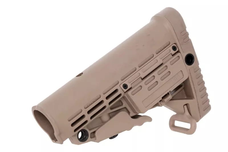 Crosse CBS rétractable en polymère version Tan de la marque CAA compatible avec tube de crosse, parfait pour vos réplique d'airsoft type M4 !