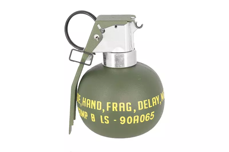 Grenade Frag M67 factice avec son support QD Molle Noir de marque S&T, idéale pour venir agrémenter votre tenue d'airsoft !