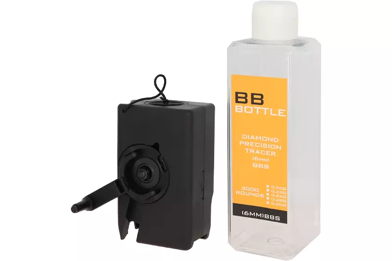 Speedloader noir en polymère d'une capacité de 3000 billes de marque GFC, compatible avec les chargeurs type M4 / M16 AEG. Idéal pour remplir rapidement vos chargeurs de répliques airsoft.