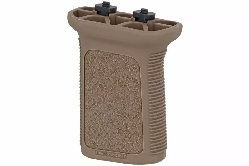 On retrouve ici une poignée tactique MOD 3 Tan pour réplique airsoft possédant des fixations M-Lok, sous licence officielle BCM GUNFIGHTER.