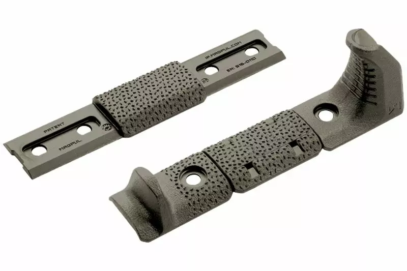 Magpul, marque Américaine reconnue pour ses accessoires RS de qualité, propose un kit hand stop Olive Green pour fixations M-LOK divisé en trois parties.